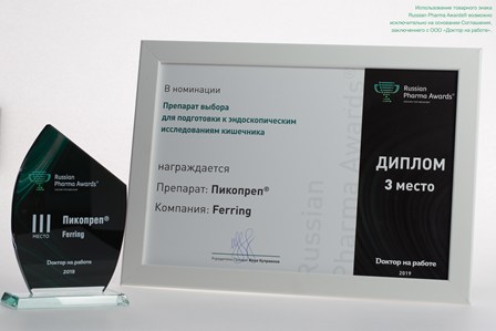 По результатам голосования препарат Пикопреп® компании Ferring Pharmaceuticals был признан одним из лучшим в номинации «Препарат выбора для подготовки к эндоскопическим исследованиям кишечника», попав в тройку призёров.